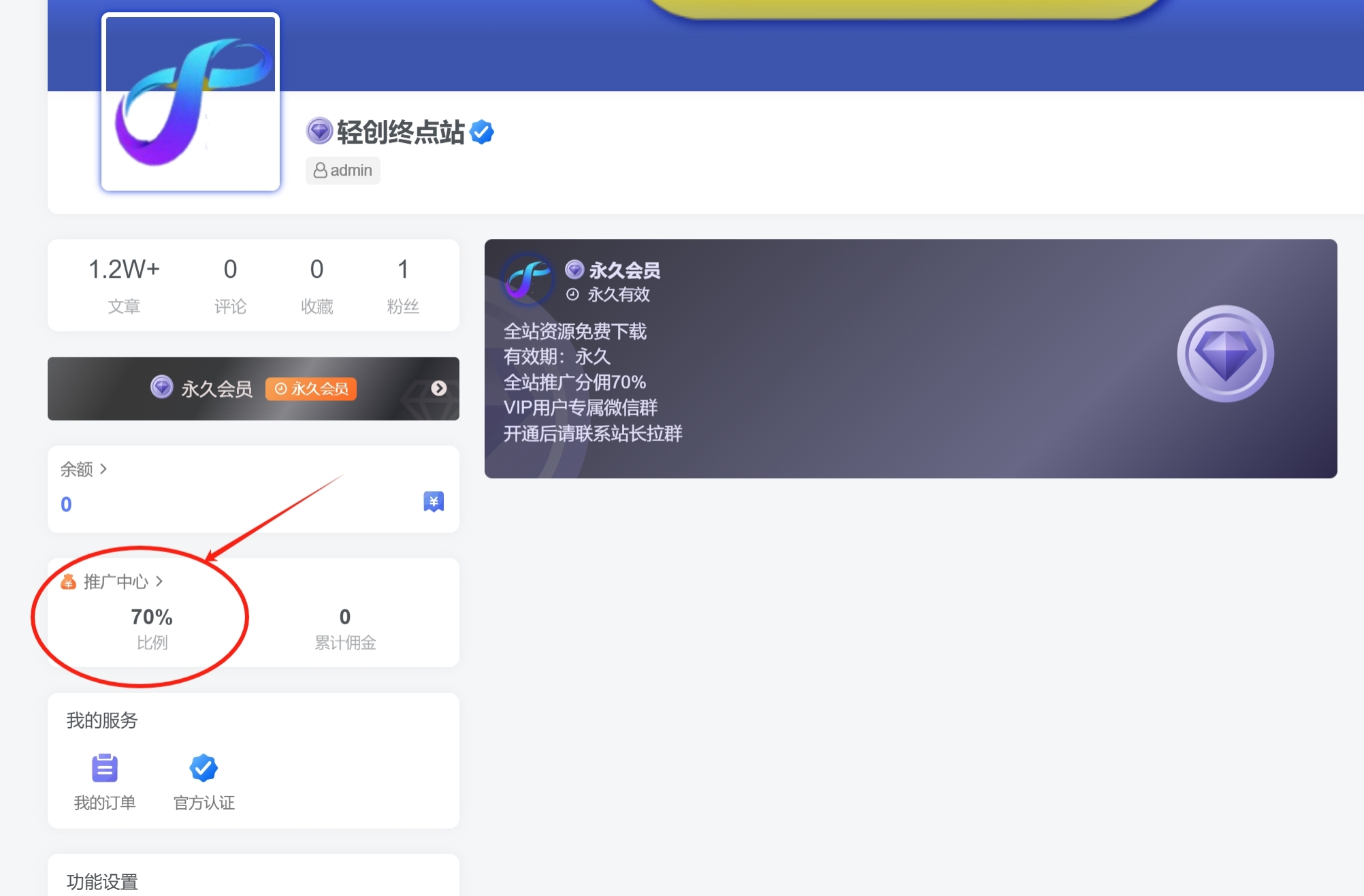 ☁ 在用户中心-推广中心-复制链接或推广海报